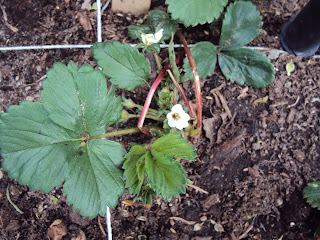 The strawberry plants are beginning to flower. Sadly, we will not get any fruit from them this year as they are a two year variety. I am so sad that I will have to pinch any blooms off of the plant this year to promote a nice harvest next year.